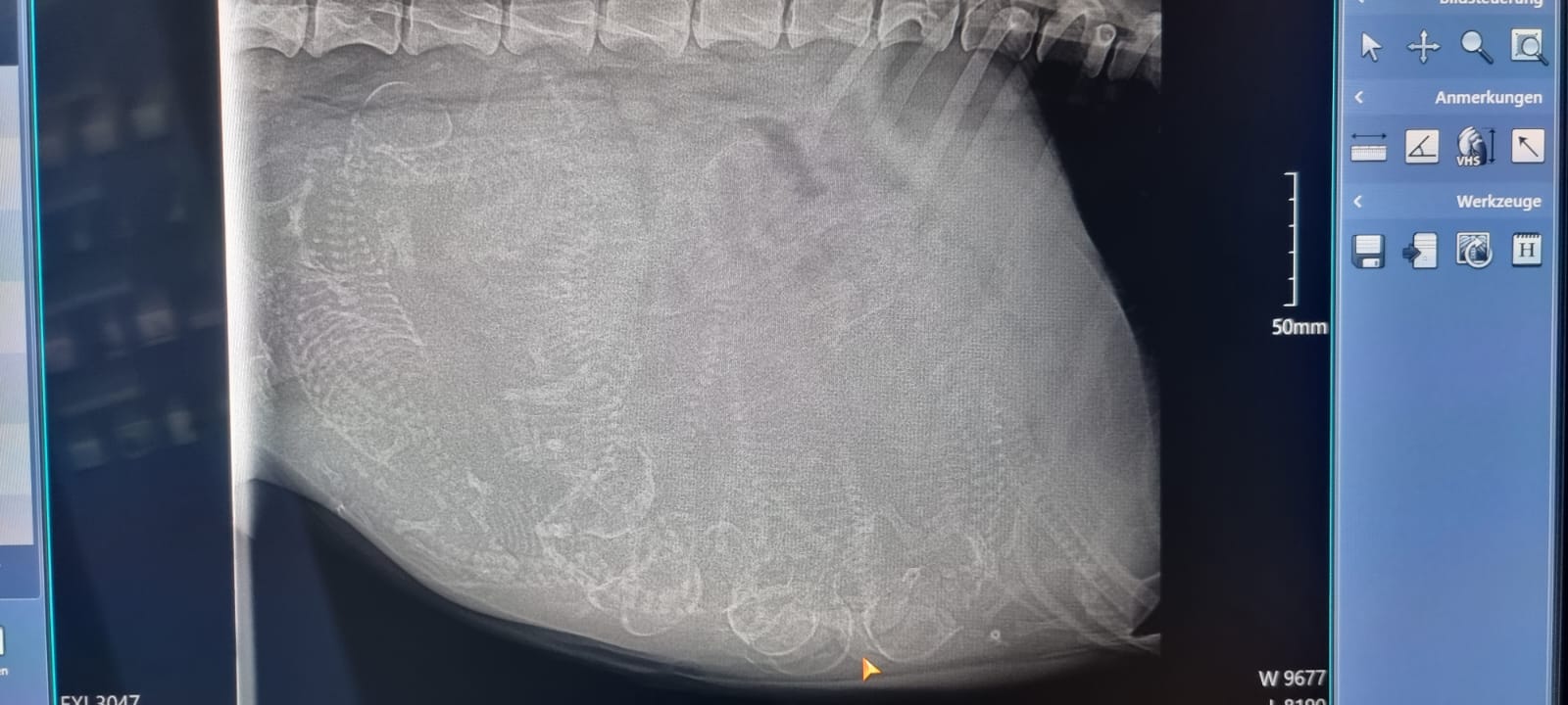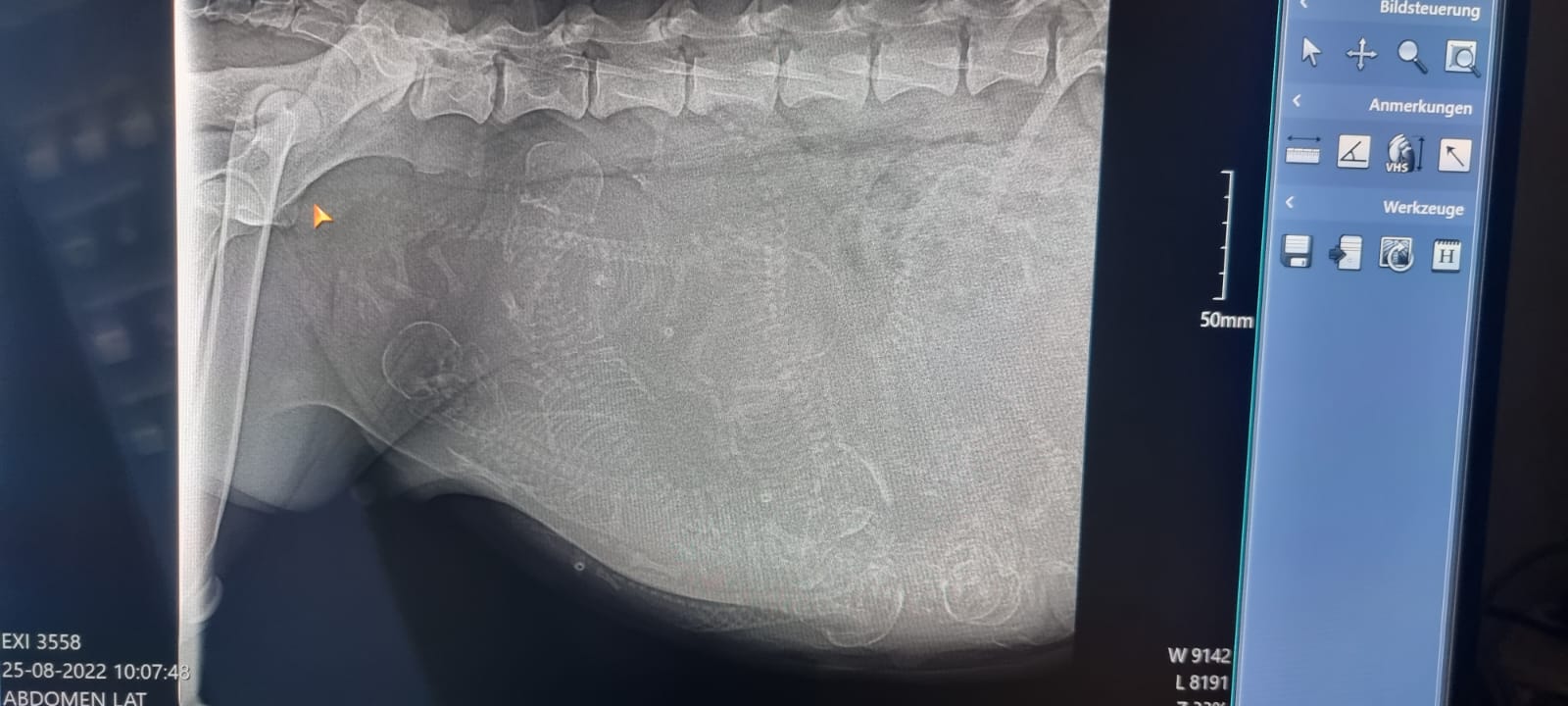 Heute am Tag 55 der Trächtigkeit waren wir mit Bones beim Tierarzt um die obligatorische Röntgenuntersuchung durchführen zu lassen.
