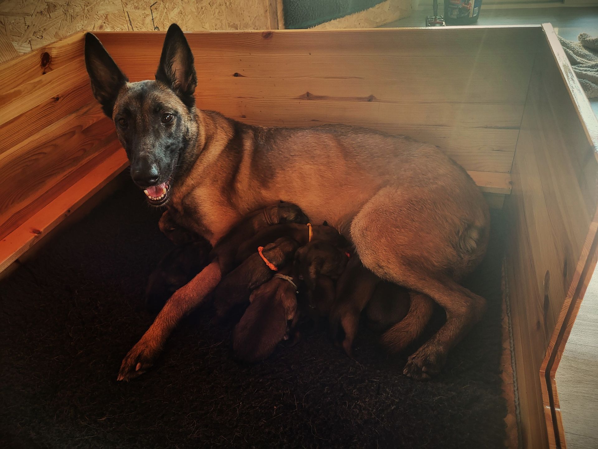 Es ist vollbracht, unser E-Wurf hat am 30.04.2024 das Licht der Welt erblickt. Insgesamt ist es mit 7 Rüden und 4 Hündinnen ein schöner Wurf geworden. Alle 11 Welpen sind quietschfidel und auch der Bones geht es hervorragend. Nachfolgend die Geburtsgewichte der einzelnen Welpen: