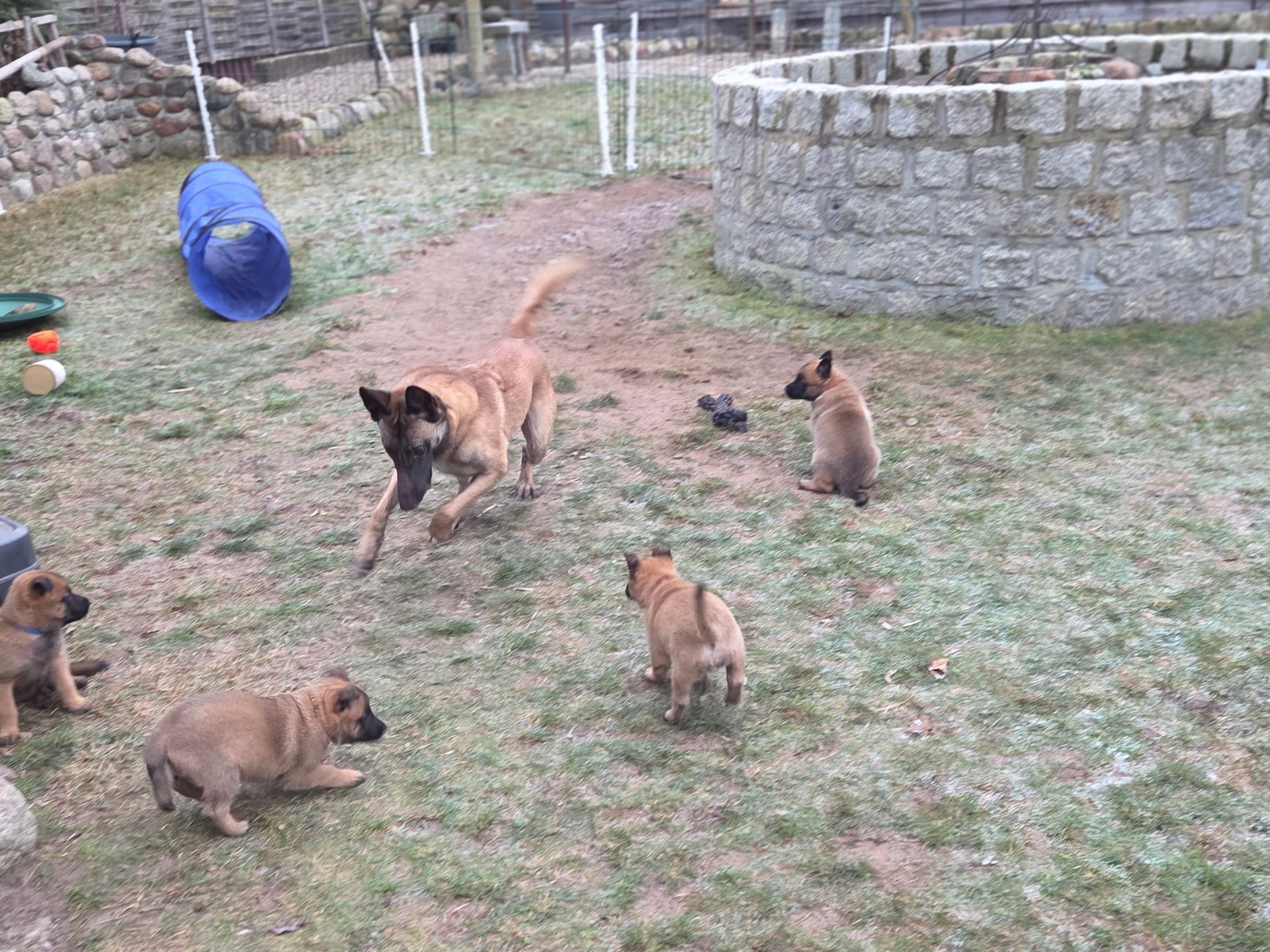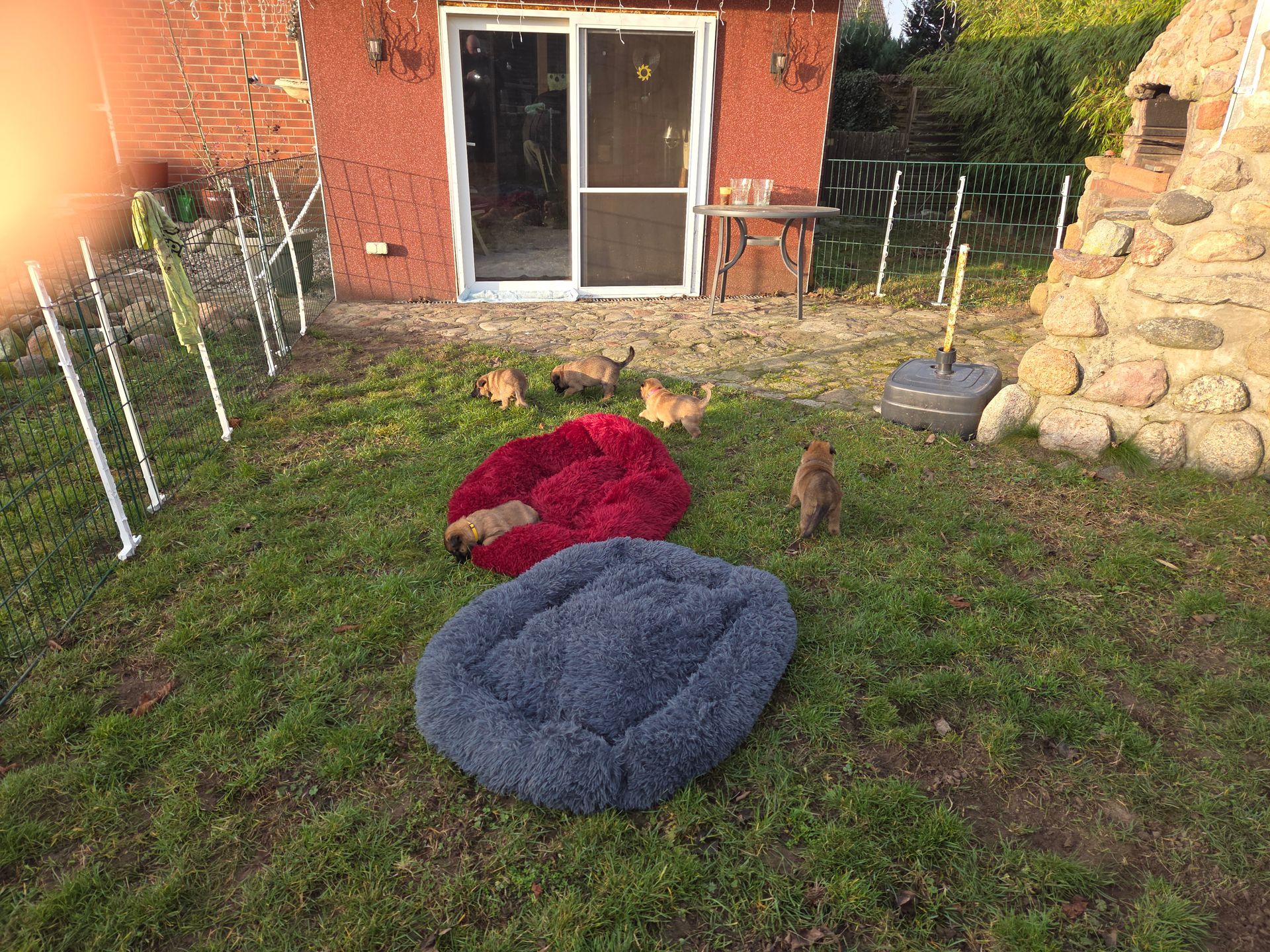Die Welpen sind mittlerweile sehr aktiv und nutzen den Hof intensiv zum Rennen, Spielen und Erkunden. Die Motorik entwickelt sich täglich weiter, Koordination und Trittsicherheit nehmen sichtbar zu.